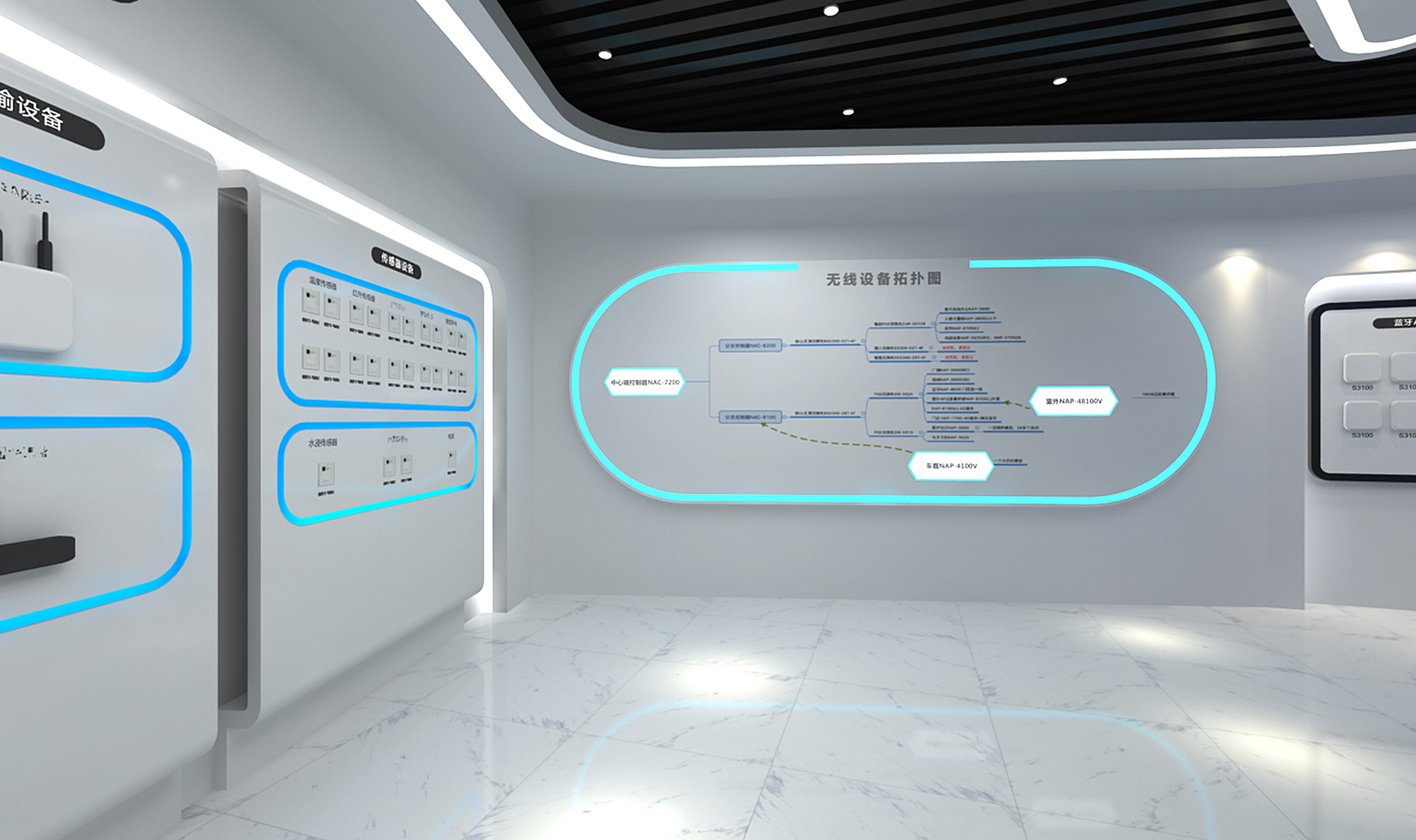 我們在整個展廳頂上里特意設置了一條LED長卷,將湘江及其沿江的風光投影其上,營造一個湘水環(huán)繞的整體空間氛圍,即點出了展館的地域特色,又很好的強調了“湘水連衡,濟經世擎天之大才”的寓意!