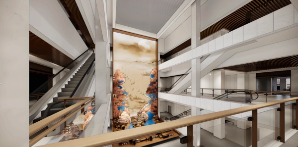 序廳之構,首重空間敘事之邏輯與氣韻。其尺度非以丈尺計,而以氣韻論——高曠處可納千載風云,低回處能聚一室幽思,暗合"大象無形"的哲學意蘊。墻面肌理非徒為裝飾,乃成歷史書寫的載體:或如青銅器銘文般斑駁,每道刻痕皆是先民對天地的叩問與對秩序的追尋;或似甲骨片般裂變,每條裂紋皆藏未說盡的卦象與未完成的預言。頂棚設計更非簡單覆頂,或作星斗羅列,暗喻"仰觀象于天"的古訓,讓觀者在仰首間觸碰到"天行健"的永恒律動與"君子以自強不息"的精神啟示;或成云氣氤氳,呼應"氣韻生動"的畫論,使光影流轉間浮現出山水畫的煙嵐之態與"道法自然"的哲學思考。
